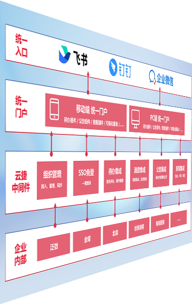 对协作平台提供支持服务,,,,支持企业应用与协作平台对接,,,包含组织同步、、、消息集成、、、待办集成等。。。支持目前主流的协作平台:钉钉、、、企微和飞书。。